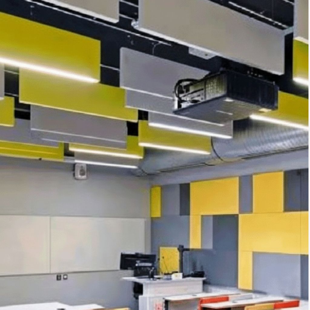 Unique Core Baffles and Clouds are innovative acoustic solutions designed to enhance sound quality while making a bold visual statement. Suspended from ceilings, these panels effectively reduce reverberation, control noise, and improve speech clarity in large or open spaces. Ideal for offices, auditoriums, educational institutions, hospitality areas, and commercial environments, they combine high acoustic performance with modern design flexibility.
