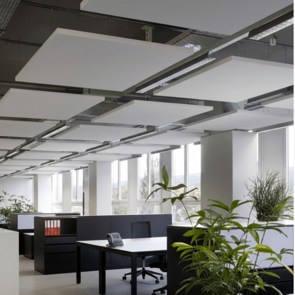 High-performance baffles and clouds designed for noise control, improved speech clarity, easy installation, durability, and creative ceiling configurations.
